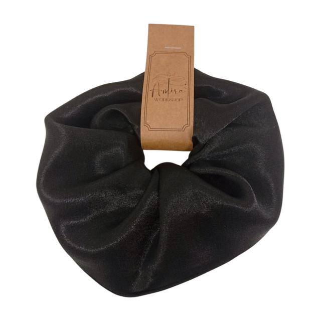 Fait maison à partir de tissu satin polyester upcyclé venant de vêtements non utilisés ou de chutes de tissus.